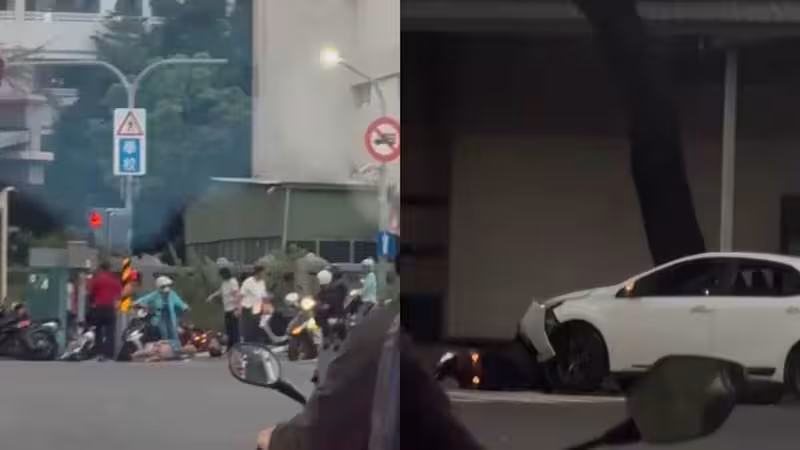 今(16)日下午5點許,高雄市楠梓區發生一起重大傷亡車禍,1名73歲男子駕車先是衝撞一輛紅色機車後,失控又撞向待轉區的8台機車,造成9人送醫,其中1名傷者在送醫搶救後仍宣布不治。