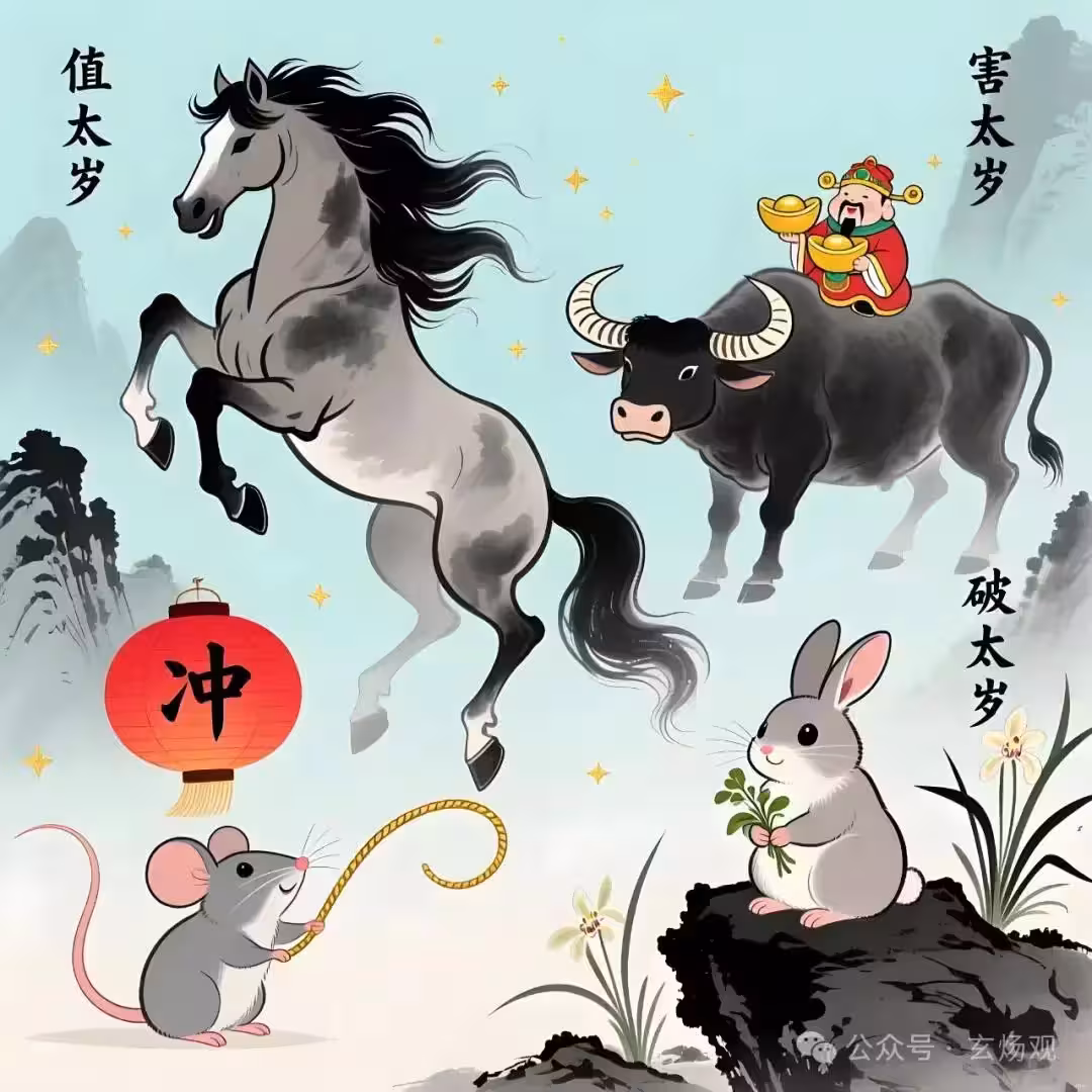 因此,2026年共有四個生肖與流年發生相犯,分別為:屬馬、屬鼠、屬牛和屬兔,分別對應值太歲、沖太歲、害太歲和破太歲。