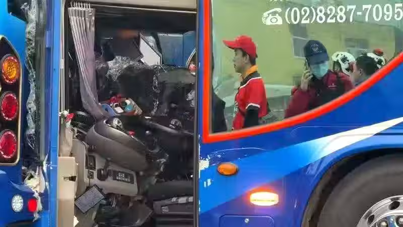 這起事故造成後方遊覽車的駕駛與隨車服務人員一度受困車內,警消獲報後先派遣8部救護車到場進行救援。