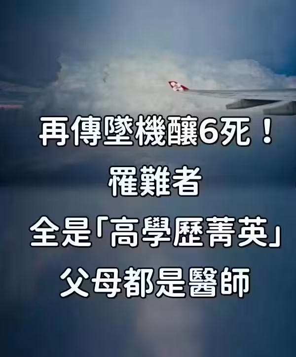 快訊/再傳墜機釀6死! 罹難者全是「高學歷菁英」父母都是醫師。