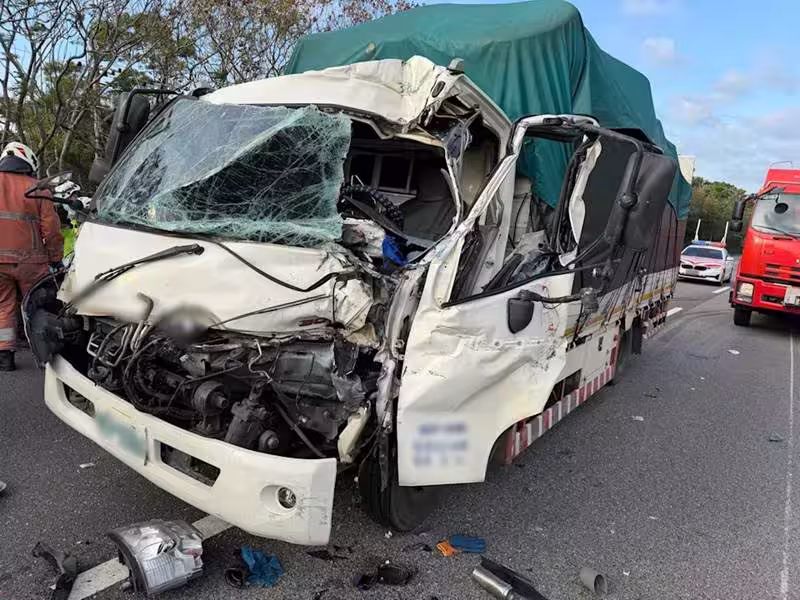 國1新竹段小貨車輪胎脫落釀「4車連環撞」 64歲大貨車司機受困OHCA不治