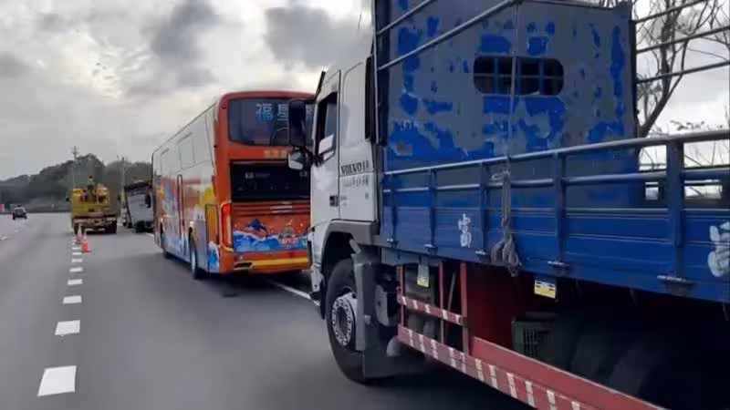 小貨車輪胎變「血滴子」! 飛砸遊覽車釀4車追撞1亡