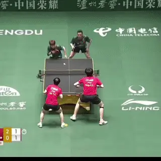 來到局末,國乒組合保持很好的進攻戰術思路,但是中國香港組合的追分效率也很強勁,追到9-8!——莎莎和大頭不斷地戰術交流,比分來到9-9!