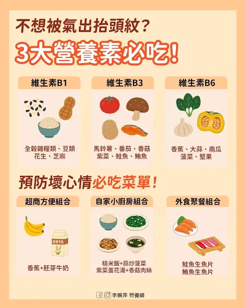 李婉萍分享,有朋友抱怨「最近被小孩氣到發瘋,那天跟我老公出去居然被認為是老公姐姐」;她對此表示,生活中不免會有讓人動怒的時候,其實吃東西攝取營養素,有助於協助穩住情緒,要避免「氣到冒煙」,推薦補充以下三種: