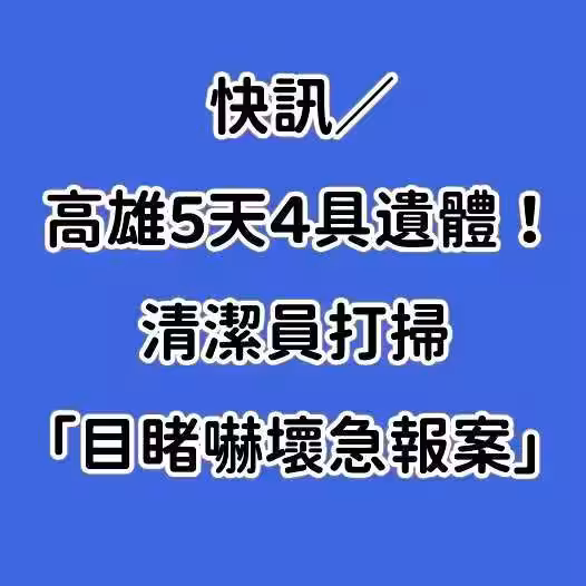 快訊/高雄5天4具遺體!清潔員打掃「目睹嚇壞急報案」!