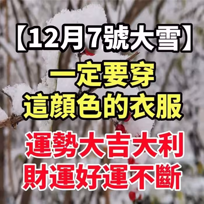 12月7號【大雪】一定要穿「這顏色的衣服」 運勢大吉大利,財運好運不斷