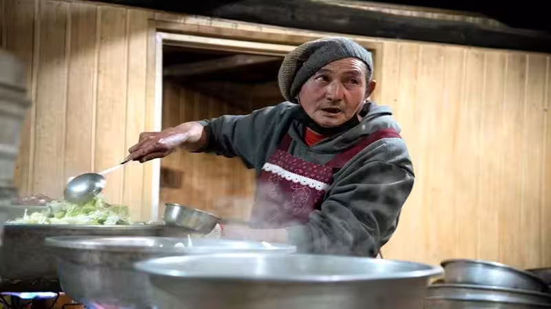 《高山遊民》主角「阿共」(趙國恭)長年任職於「九九山莊」、「三六九山莊」與「七卡山莊」。海鵬影業提供