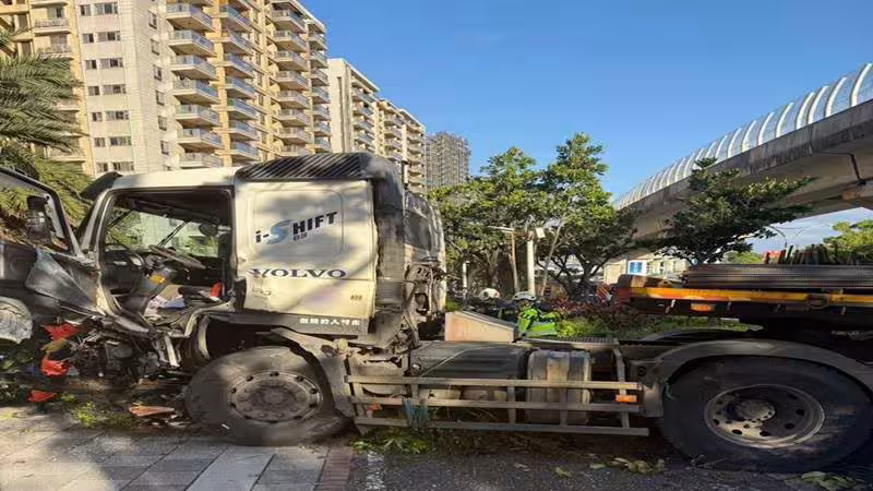 淡水淡金路拖板車失控狂鏟路燈 駕駛送醫不治