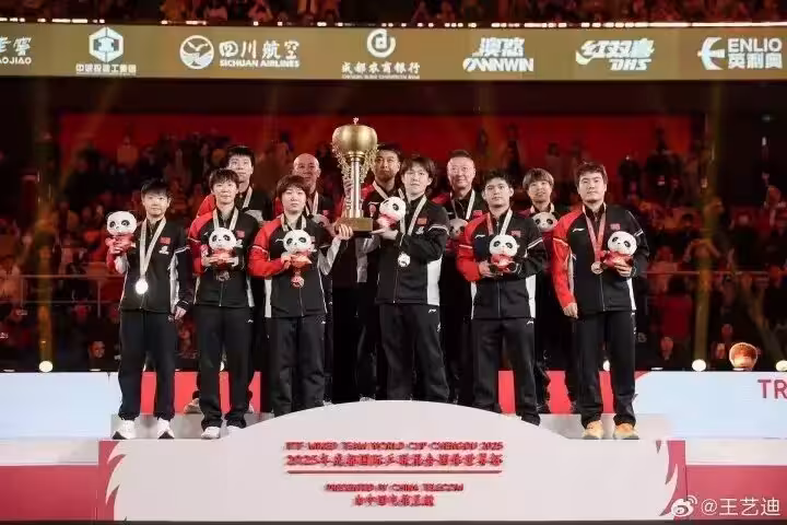這是自2023年成都首次舉辦混合團體世界盃以來,中國隊連續第三次捧起冠軍獎盃。本次奪冠陣容中,鞍山王藝迪與王楚欽、林詩棟、梁靖崑、徐瑛彬、孫穎莎、王曼昱、蒯曼等隊友共同站在了世界之巔。