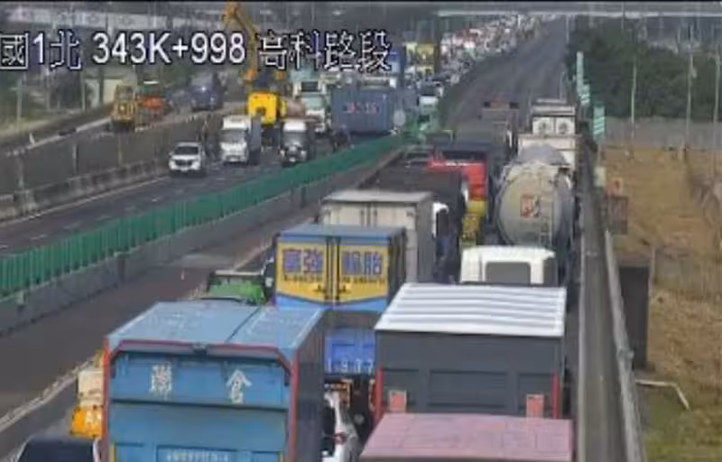 貨櫃車與2輛小貨車於國道一號南下343.8K於發生碰撞。