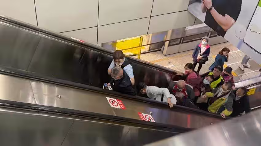 有民眾在亞東醫院站目擊,早上10時有幾位長者在手扶梯上不明原因紛紛跌倒,站務人員馬上協助支援,「希望長者們沒什麼大礙」。