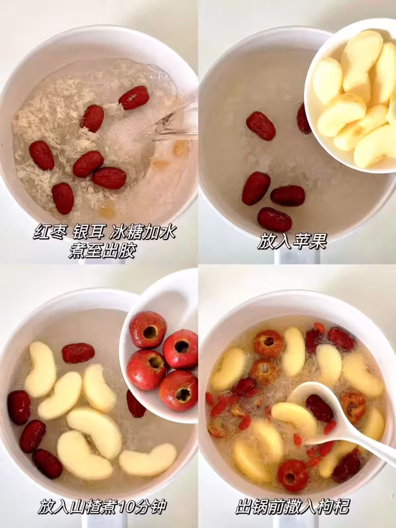蘋果、銀耳、冰糖、枸杞、山楂、紅棗