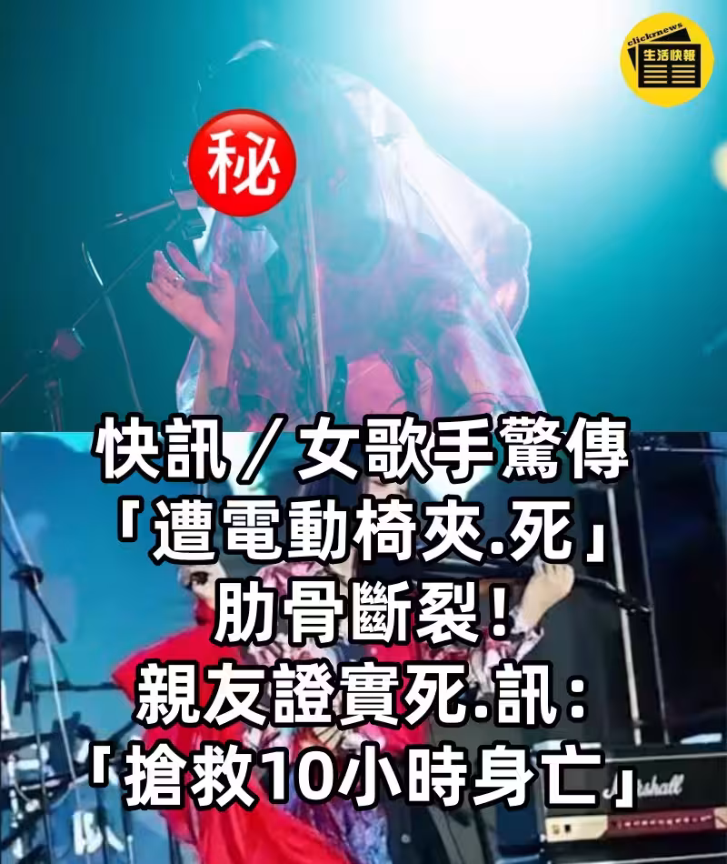 快訊/女歌手驚傳「遭電動椅夾.死」肋骨斷裂!親友證實死.訊:「搶救10小時身亡」