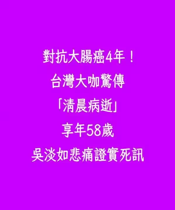 對抗大腸癌4年!台灣大咖驚傳「清晨病逝」享年58歲 吳淡如悲痛證實死訊。
