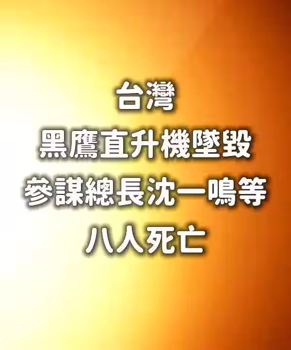 快訊/台灣黑鷹直升機墜毀, 參謀總長沈一鳴等八人死亡!