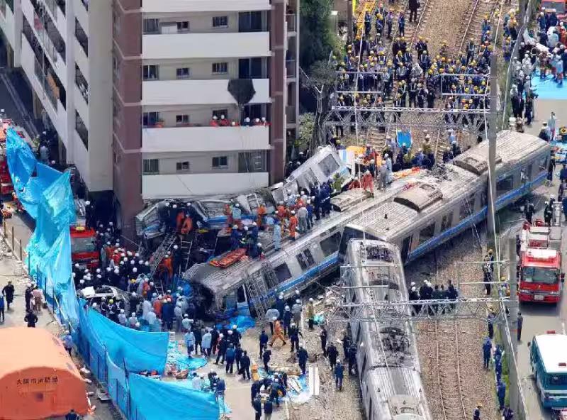 日本列車出軌釀107死562傷 !2節車廂「撞入公寓大樓」 出事原因曝光 「駕駛害怕被罵」