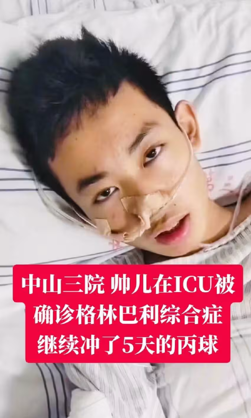 很快,一家三口到了中山三院,王帥直接住進ICU,並被確診為格林巴利綜合徵,仍舊輸丙球治療。