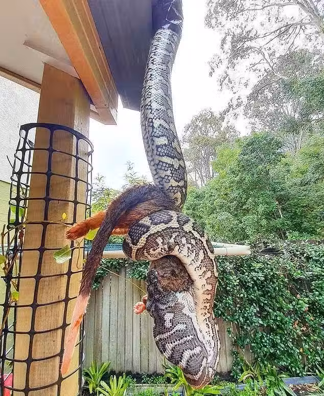 澳洲巨蟒「神出鬼沒」口含大負鼠從天而降!捕蛇專家都無可奈何,目睹巨蟒全部吃完才敢動手