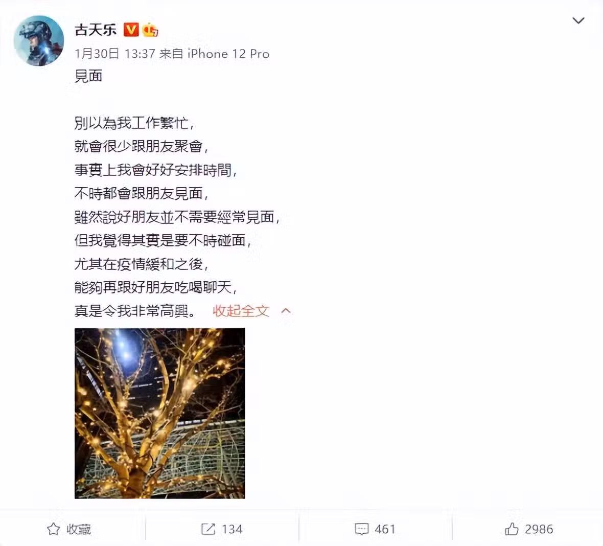 古天樂發文否認耍大牌,工作忙也會跟朋友聚會,被人質疑感到生氣