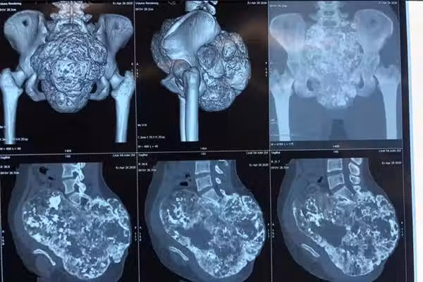 最初,醫生診斷稱Cam Thi Anh是患有肌炎,便開了幾個月的口服藥物。然而,在停止服用藥物後,Cam Anh還是會感到疼痛。7個月後,她因劇烈疼痛、腹脹、呼吸困難等原因再次來到醫院就診。由於不能正常進食和飲水,Cam Anh的體重從52公斤迅速下降到20公斤。