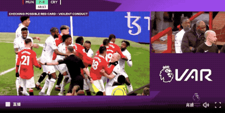 第66分鐘,施魯普推倒安東尼,兩隊就此爆發了大規模的衝突,多人捲入其中,裁判回看後做出判罰,鎖喉的卡塞米羅被紅牌罰下。
