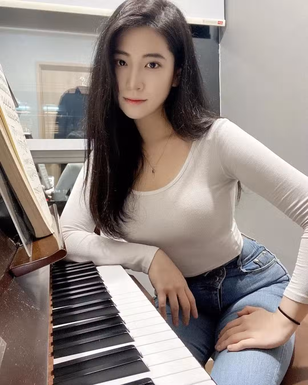 鋼琴正妹「驚人曲線」惹網友暴動 本尊身分曝光