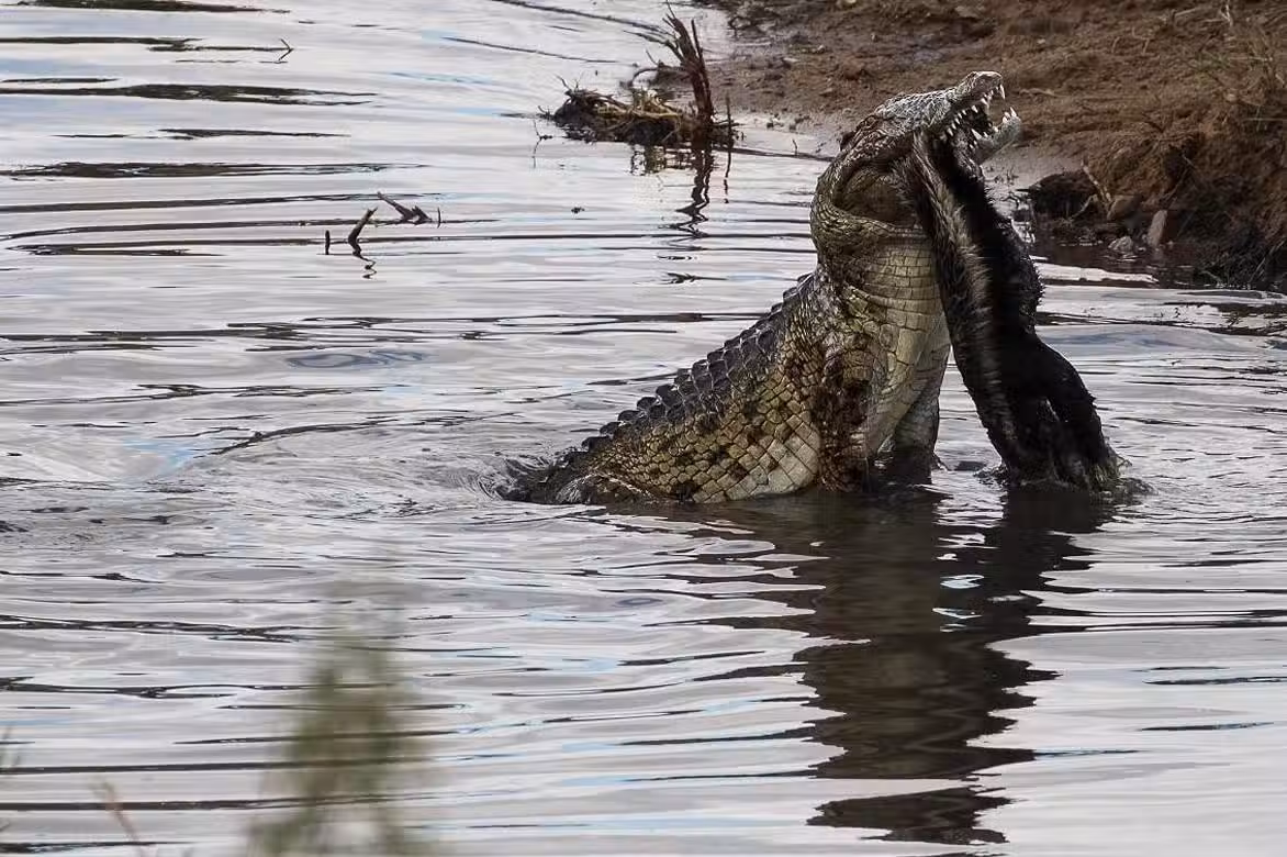 然而,我們有句俗語,"常在河邊走,哪能不濕鞋",今年早些時候,在南非克魯格國家公園的荒野世界中,攝影師希拉·格羅貝拉爾見到了一條尼祿鱷,它的嘴巴裡緊緊咬著一具新鮮的蜜獾身體。