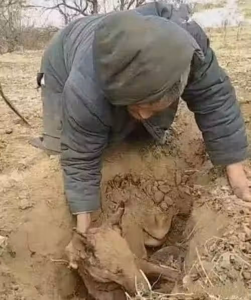 15歲老狗臨終前緊緊靠在老人懷里,老人含淚埋葬狗狗,讓人淚奔