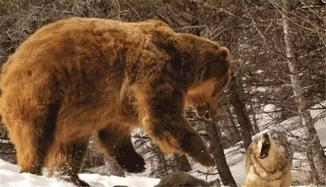 這還得了,熊被咬得四處是傷,再不逃跑,小命難保了。很快,母熊從狼群的包圍圈中殺出了一條缺口,開始逃命。