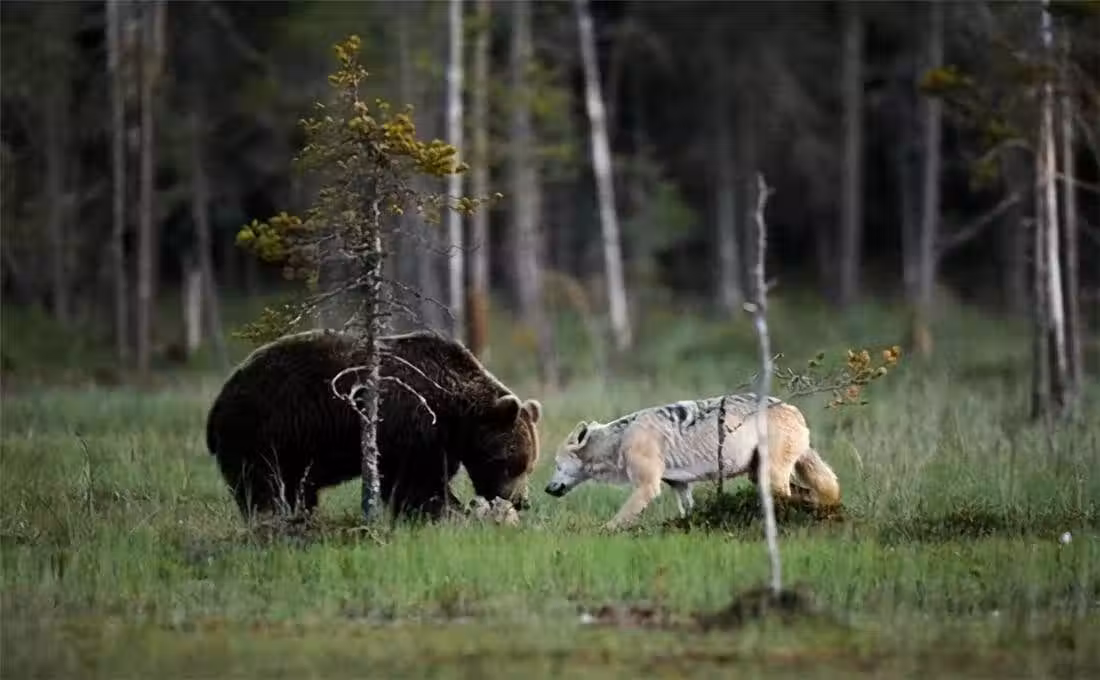 其四,棕熊的攻擊速度有點慢,一次攻擊很難對狼群形成致命傷害,因此當它們和狼群戰斗時,無法像老虎一樣將狼快速擊殺。