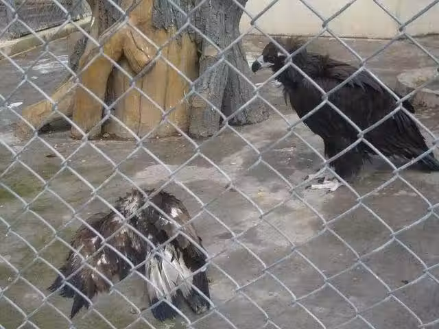 禿鷲金雕「誤放同一籠中」,金雕被撲倒「瘋狂撕咬」,趴在地上成這模樣:雕兄太慘了!
