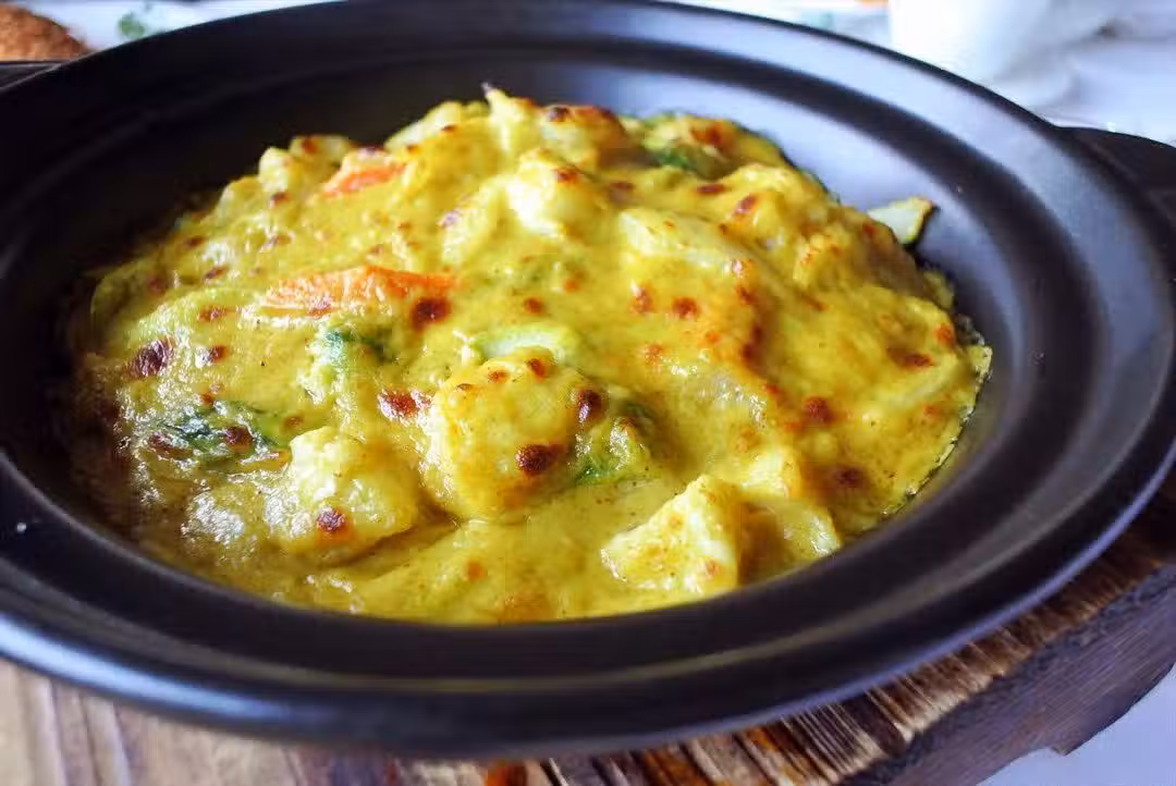 10 葡汁海鮮飯放進烤箱,大火焗20鍾。出爐。