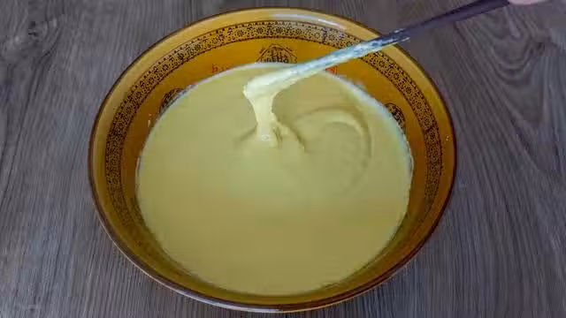 1、先來和面吧,糯米粉150克,麵粉200克,雞蛋3個,酵母3克,白糖30克,常溫水200毫升,攪拌成一個沒有乾麵粉的細膩麵糊,這種程度就差不多了。