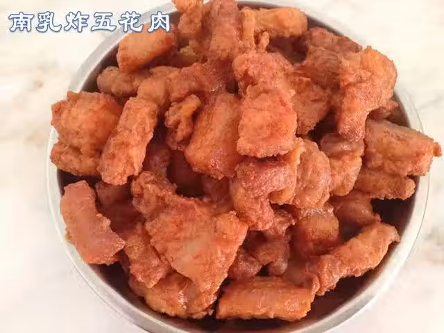 6. 炸好的五花肉盛起放入廚房紙上吸取多餘的油即可。