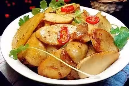 杏鮑菇200g、土豆200g、紅椒適量、肥肉適量、蚝油適量、生抽適量、孜然辣醬適量。
