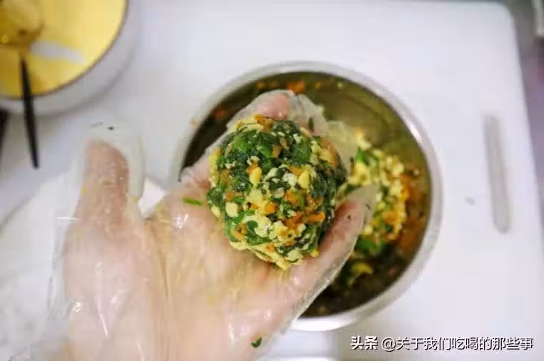 1、胡蘿卜洗凈擦絲,倒入開水中焯水1分鐘,撈出擠干水分,切成碎末。菠菜洗凈後也下鍋焯水,擠掉水分後切碎。