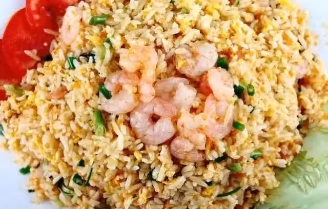 剩米飯,鮮蝦,雞蛋,蔥,鹽,耗油