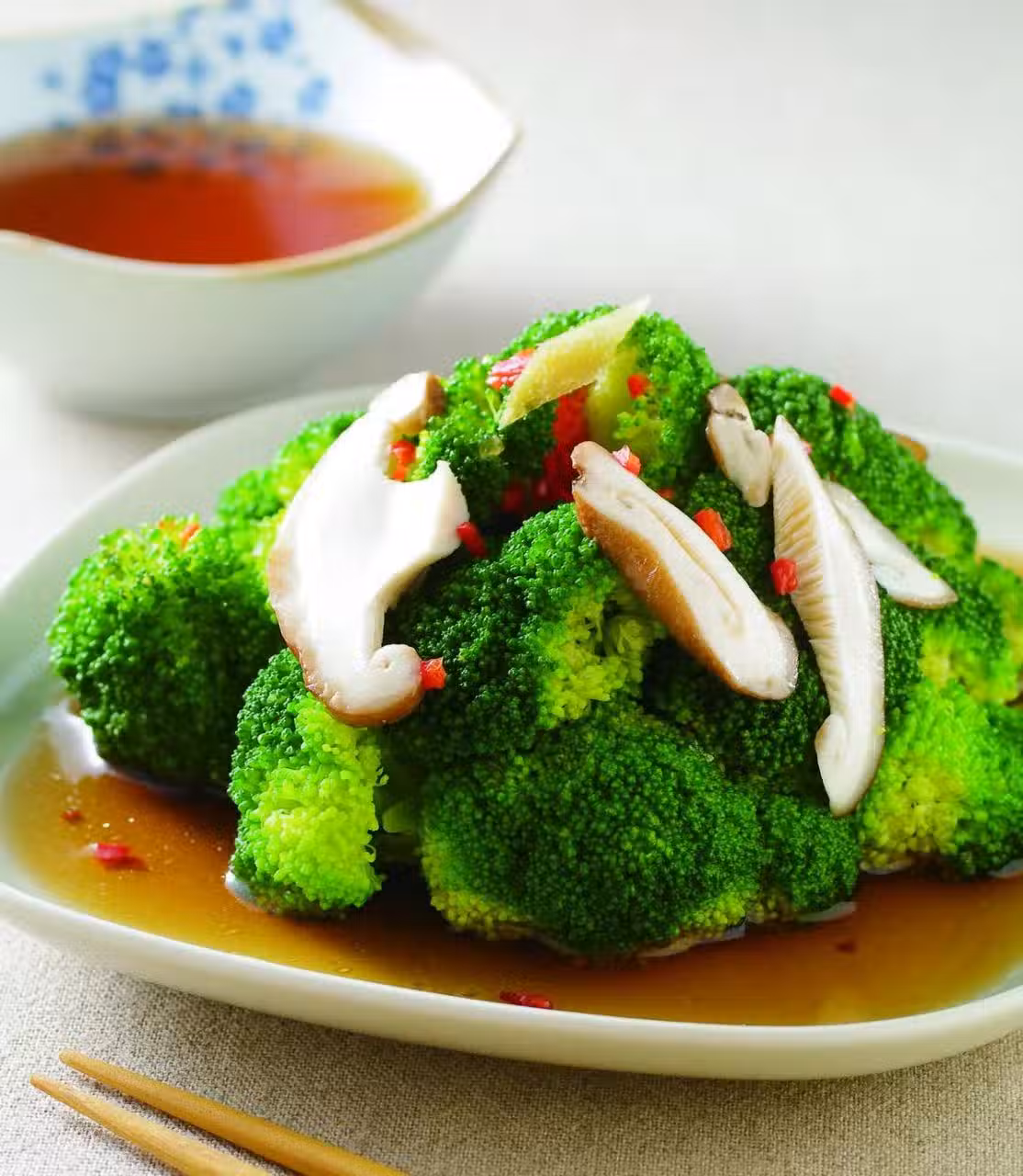1 花椰菜洗淨,去除較硬的外皮,切成小朵狀;生香菇洗淨切絲;紅辣椒切末。