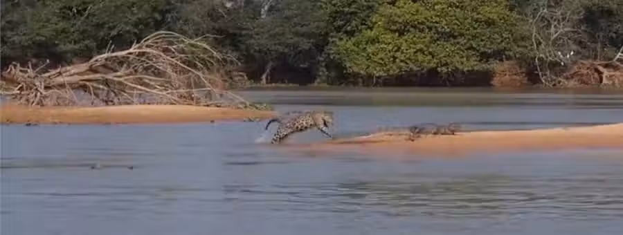 美洲豹河邊喝水,下一秒卻抓到一個「大傢伙」