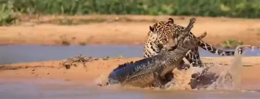 美洲豹叼起鱷魚,一個轉身就向岸邊跑去.以上文章關於動物,愛情,娛樂等新聞,全採取網絡資料所報寫的文章,儘提供免費閲讀,希望您美好一天~幸福安康