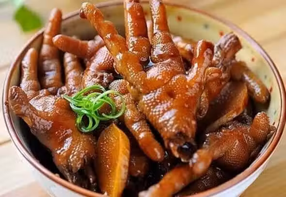 雞爪、花椒、八角、桂皮、香葉、冰糖、料酒、老抽、生抽、十三香、姜