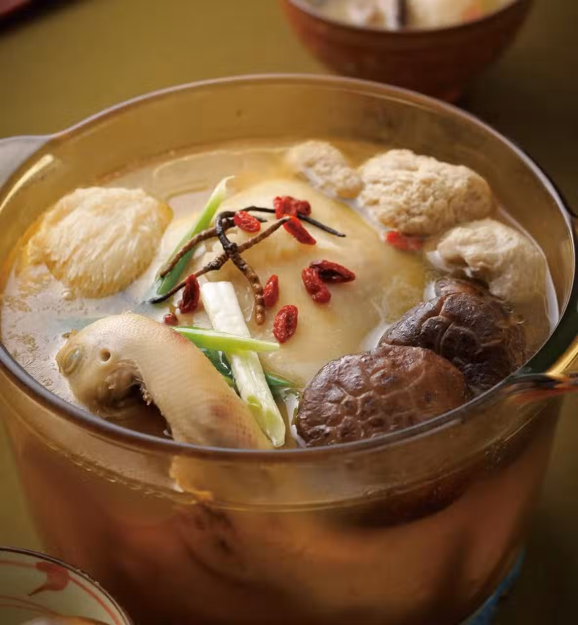 2 花菇、猴頭菇和冬蟲夏草,洗淨略泡水備用。