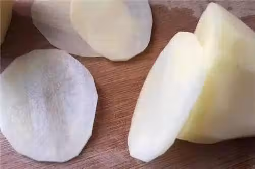 步驟2:接著在土豆片全部切好之後就放入清水中,然後將土豆表面的澱粉清洗乾淨,並且將土豆放入水中浸泡上5分鐘,然後瀝干水分放入碗中。接著如果是放入烤箱中的就將它用鹽腌制30分鐘,然後放入烤箱中烤,如果是炸就可以免了。