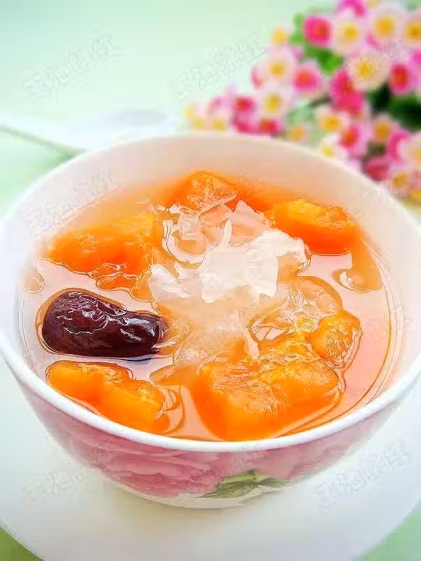 木瓜1個;銀耳一朵;紅棗8粒;冰糖