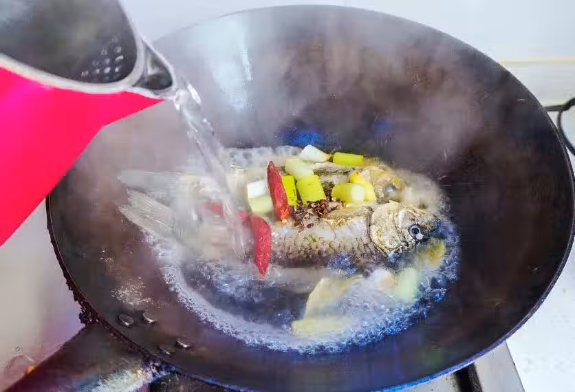 所以在不管燉煮什麼魚的時候,用熱水將魚身浸泡10分鐘,這一步是不能少的,不然燉出來的,魚湯不鮮,魚肉不嫩,而且吃起來腥味也非常的重,根本就沒辦法下口,為了避免這樣的情況,大家一定要注意這一步。