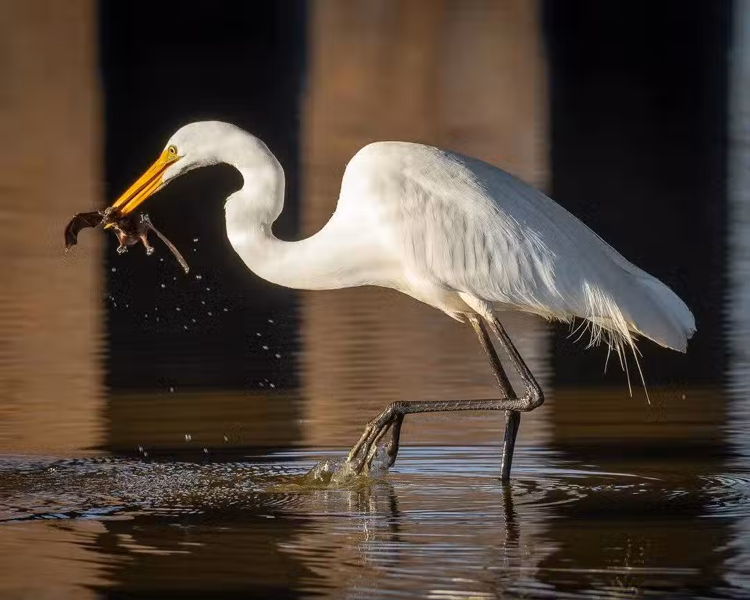 大白鷺棲息於水資源十分豐富的地方,因為水資源豐富,自然水生動物就多,可想而知,大白鷺主要以魚類、蝦類、蟹、蝌蚪、泥鰍、黃鱔、蛇等動物為食,也包括了尾部又尖又鋒利的蛇鰻。