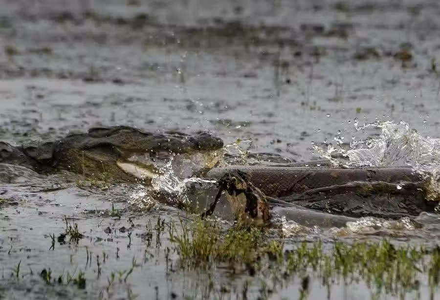 鱷魚與巨蟒的遭遇戰,蟒蛇剛剛進食完正處於疲憊期