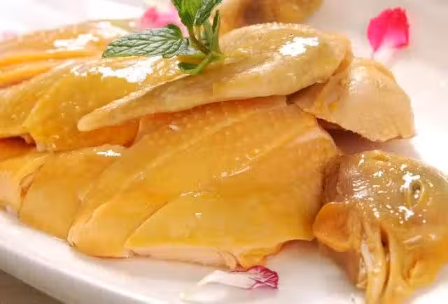 燒沸一鍋水,把整隻雞放入,熄火;蓋好蓋,燜著十分鐘,以斬出來的雞塊骨髓帶血為適,斬件後,點著調料吃。