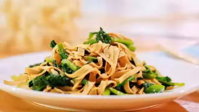 1. 千張倒入沸水中焯水後撈出,焯好的千張切絲。