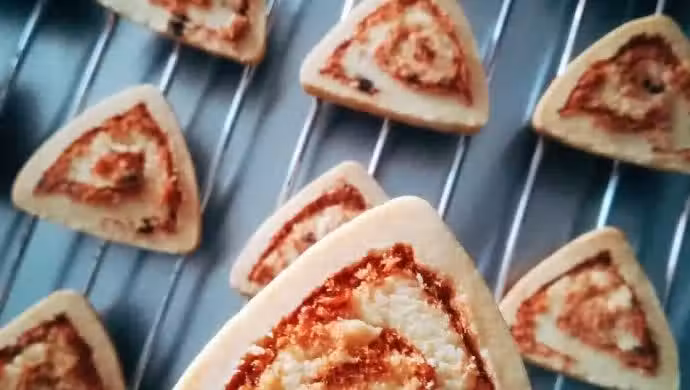 4. 冷凍2小時,切成厚5mm的薄片,送入烤箱